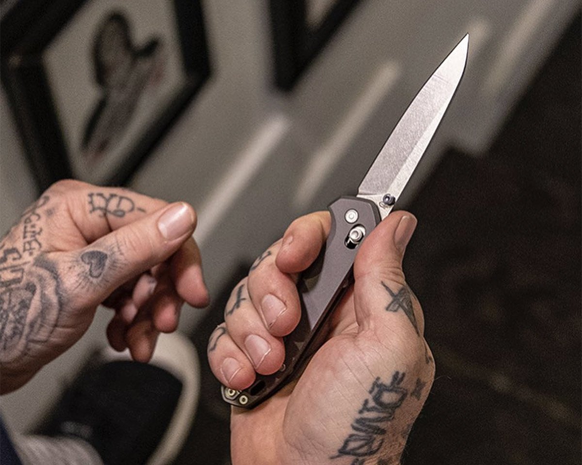 Its ambidextrous design makes it easy to open one-handed with either hand, and the frictionless deployment allows you to whip out the blade and get cutting in a matter of seconds. Thanks to the built-in pocket clip, you can keep it close at hand and within easy reach at a moment’s notice. You’ll love the handle—made from either aluminum or carbon fiber, your choice—which will give you a solid grip on the knife no matter how wet or slick your hands are. At 3.5 inches long, it’s a sturdy, agile blade that’s as much at home in the field as on a camping trip or fishing boat.