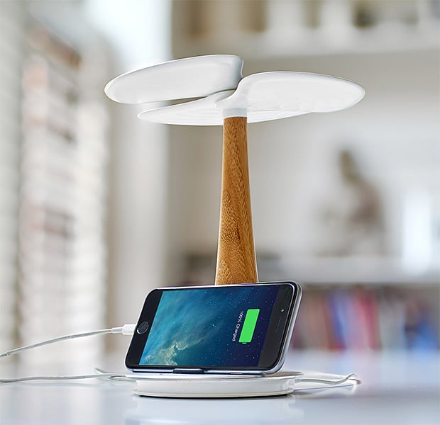 Made of eco-friendly plastic and bamboo, this desktop solar charger is designed to look like a Gingko tree and features a 4.000 mAh lithium battery that stores the clean energy it produces. The tree’s base acts as a stand for your phone or tablet while charging via USB.