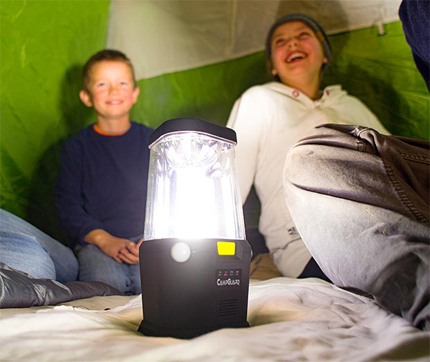 Whether it’s a bear on a midnight stroll through the campsite or something scarier—if that’s even possible—the CampGuard Perimeter Security lantern will immediately light up & alert you. The built-in 360º motion detectors are set with the push of a button, and when they sense movement the 300-lumen LEDs are triggered. After 15 seconds with no movement, the lantern turns back off automatically. When not in security mode, it functions as a normal LED camp lantern.