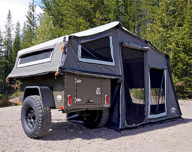 Built for overland camping excursions, the Journey Trailer Basecamp package from Oregon-based Freespirit Recreation is an all-in-one, compact camp cargo trailer with a built-in 9-foot tent. Accessories like an awning, tent Annex, & lighting systems are also available to fully kit it out.