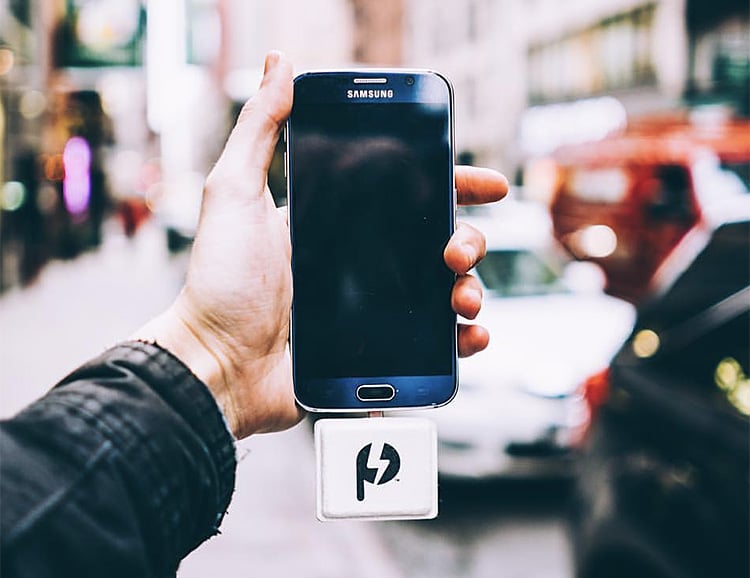 Slim, compact Powrtabs provide portable power for your Lightning & MicroUSB devices. Inside the flat, compostable cardboard packaging is a thin recyclable Li-Ion battery that comes pre-charged with enough juice to give your phone about 4 hours of life or a full charge for most headphones.