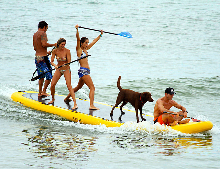 The 18-foot Suplex Giant SUP board is big enough for the whole crew to go for a cruise—all at once. It’s got a weight limit of 1550 pounds, so basically, all aboard! Made of tough, military-grade PVC, it is inflatable and pumps up with 2 included hand pumps. When you’re done having fun, it deflates quickly for easy transport.