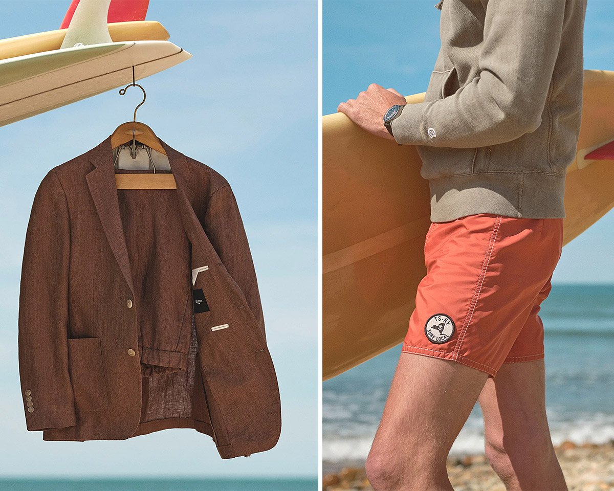The legendary designer teamed up with the iconic American brand on a run of board shorts–for casual times–and a set of breezy summer suiting (for the big day itself), and it’s everything you’d expect from two heritage-minded brands: Stylish, essential and versatile.