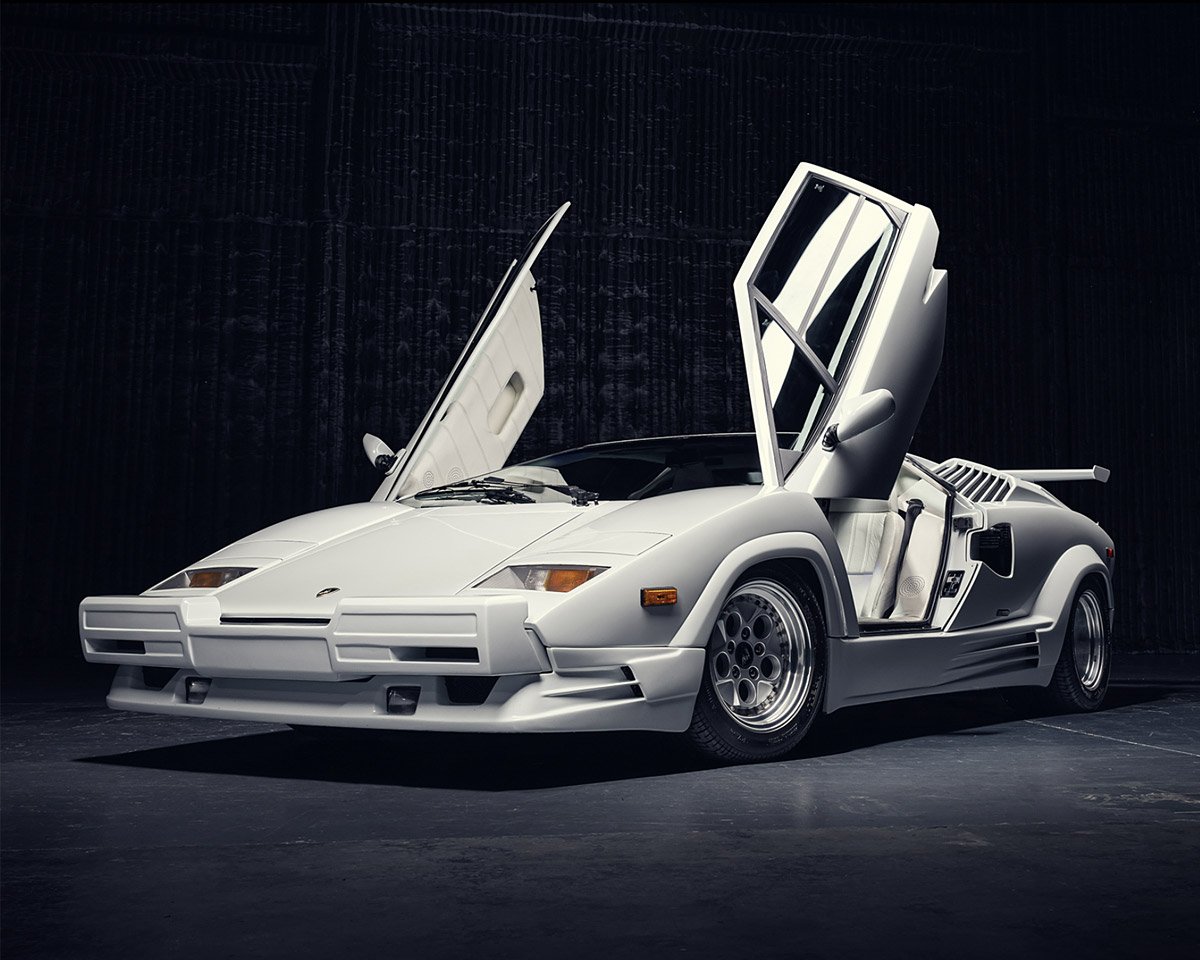 The 1989 Lamborghini Countach 25th Anniversary model (chassis number KLA12722) is one of only 12 all-white vehicles (Bianco exterior and Bianco Polo interior) crafted specifically for the American market.