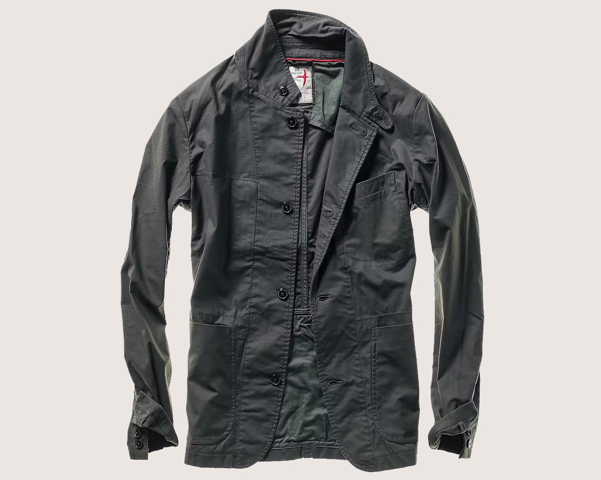 Here, they’ve blended the aesthetic of a classic hunting coat with the timeless feel of a blazer, resulting in a four-button style made from soft, stretchy garment-dyed fabric.